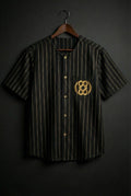 The Heritage Pinstripe Jersey reimagines a classic sports silhouette through African craftsmanship and symbolism.